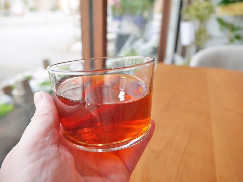 お店の真ん中にあるアンティークテーブルが、和な雰囲気と融合しててステキ。カウンターの黄色いタイルは、イメージカラーの「ミモザイエロー」なんだって。