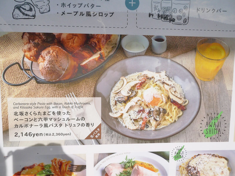 では注文は「北坂さくらたまごを使ったベーコンと六甲マッシュルームのカルボナーラ風パスタ トリュフの香り」にして~