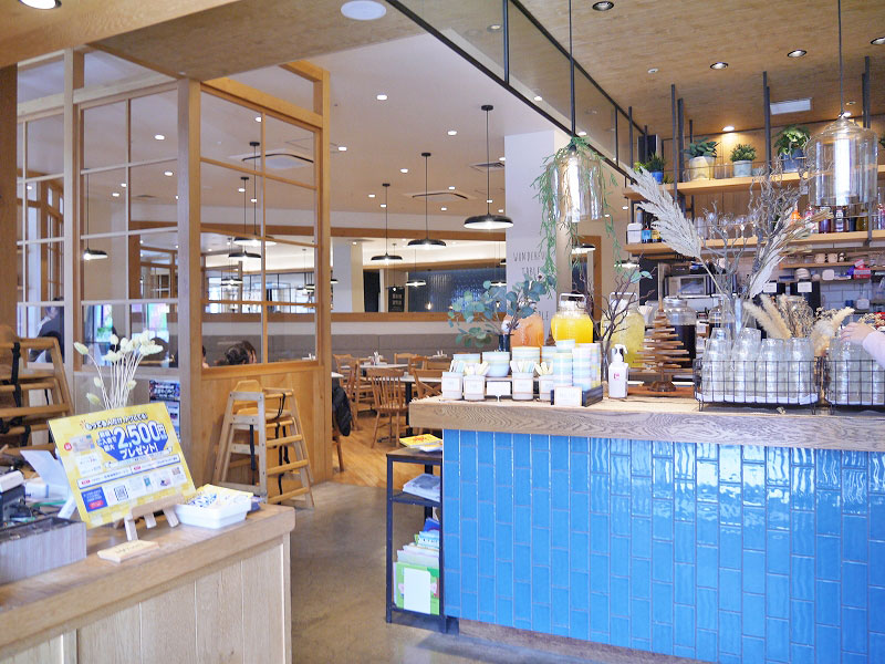 白壁と味わいある木の質感に包まれたシンプルでナチュラル空間の店内は、思ったより広いスペース。