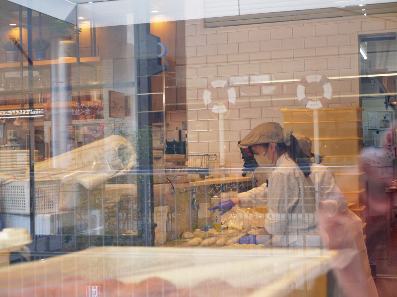 ちょっと店内を覗いてみると・・・職人さんがパンを作ってますよ。