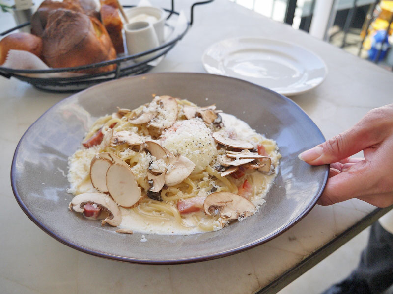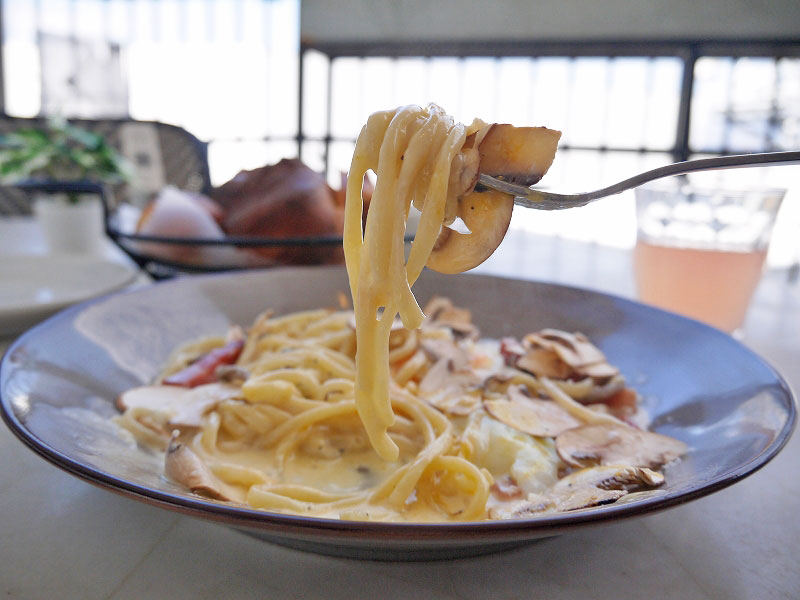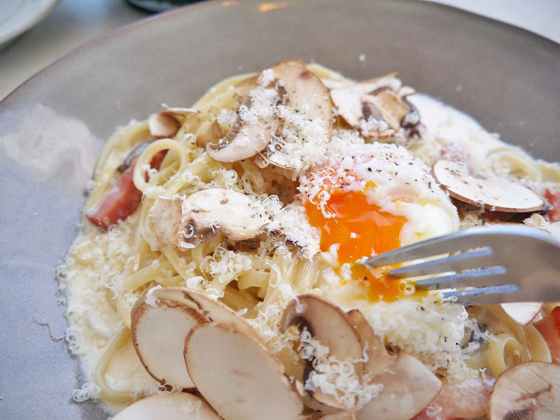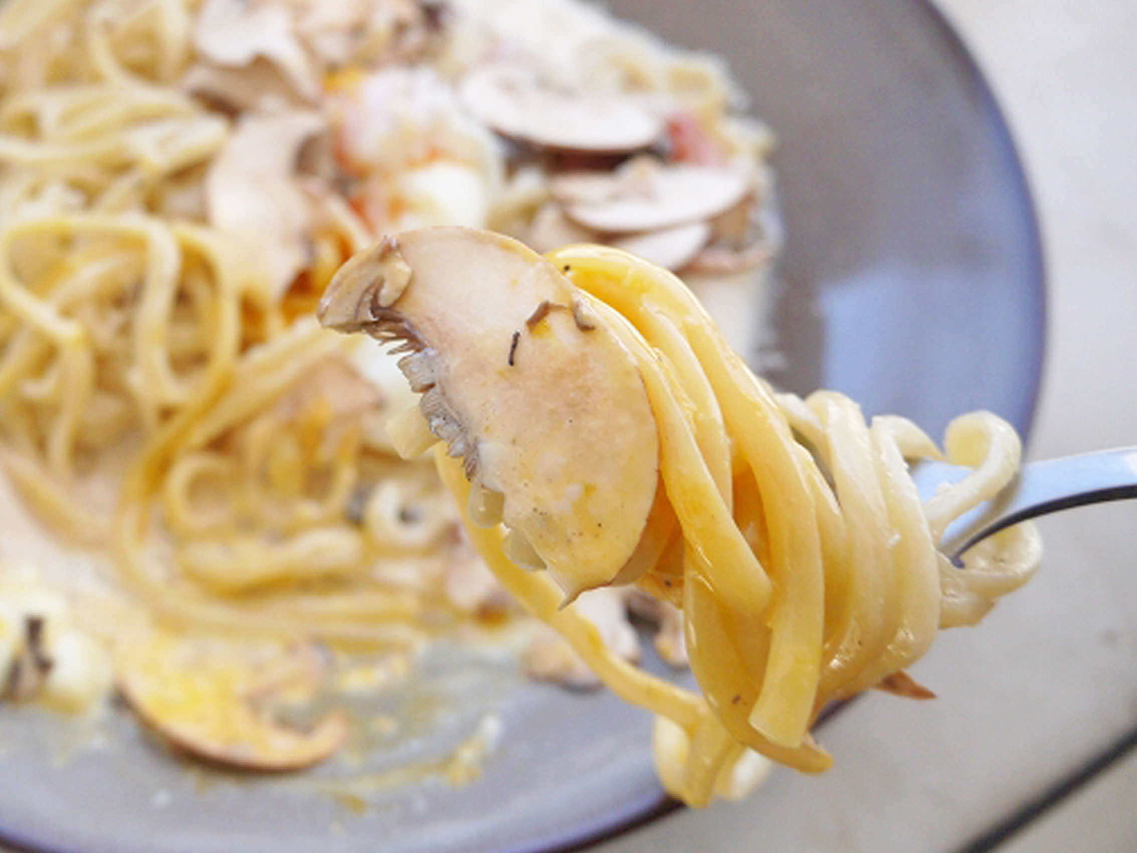 「北坂さくらたまごを使ったベーコンと六甲マッシュルームのカルボナーラ風パスタ トリュフの香り」もやってきましたよ~。