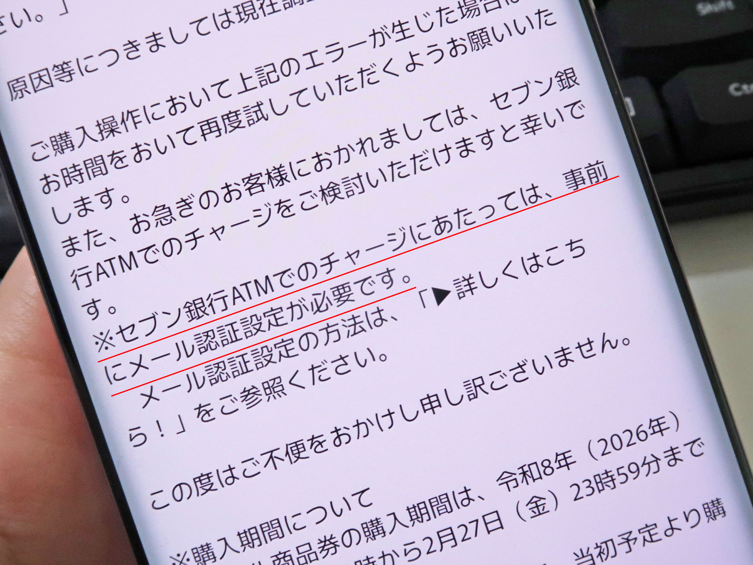 「プレミアム付デジタル商品券」をコンビニATMで購入するには「メール承認設定」が必要だそうです。