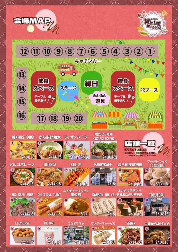 開催日は2月14日(土)、15日(日)午前10時から午後4時までです。