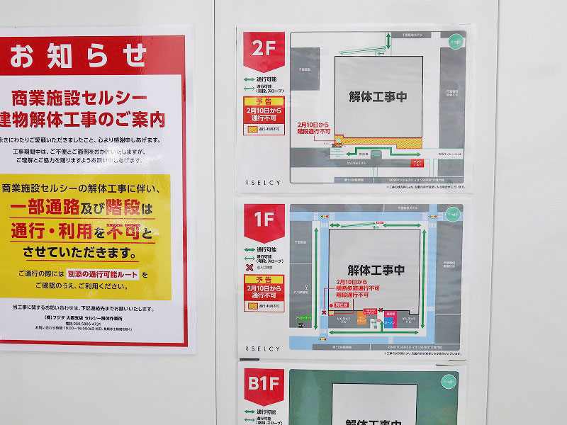 千里中央の「バス乗り場」付近から「パル南広場」へ上がる通路が閉鎖されるようです。