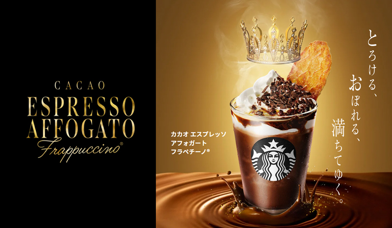中でも新発売のフラペチーノ系に注目してみると、チョコレート風味を堪能する極上の「アフォガードフラペチーノ」や