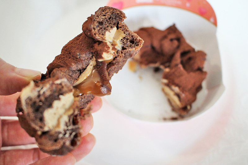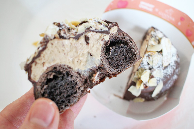 ショコラ生地のドーナツにガナッシュクリームとプラリネホイップがギッシリ詰まって贅沢な美味しさだし