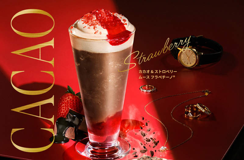 カカオのビター感と甘酸っぱい苺が織りなす華やかな「カカオ&ストロベリー ムースフラペチーノ」など、ちょっと大人なラインナップを楽しめそうですね!