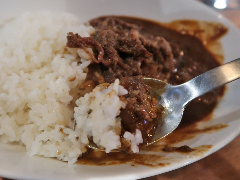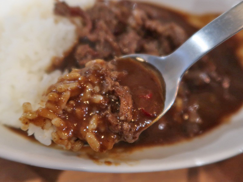 スパイシーなカレーが牛すじの甘辛さに包まれてなんとも言えない美味しさに。