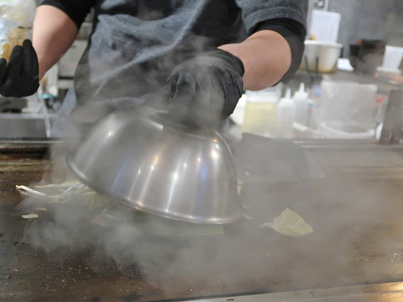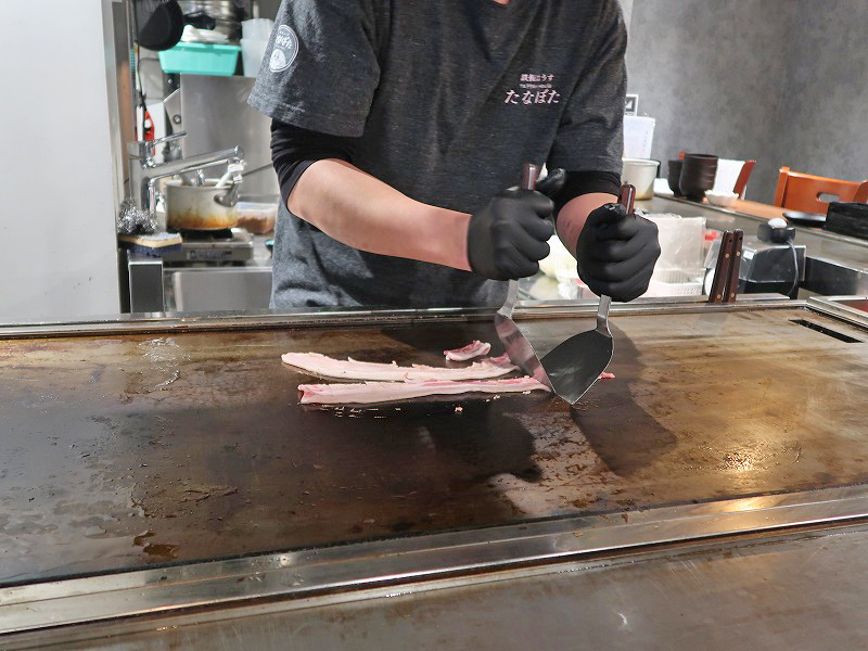 鉄板焼きって、このライブ感あるのが楽しいですよね~。
