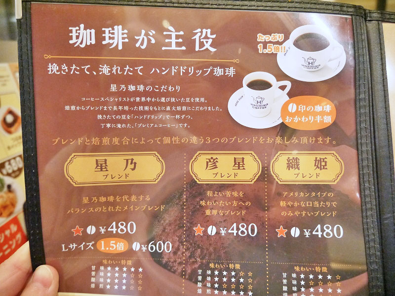 先にコーヒー「星乃ブレンド」が運ばれてきて