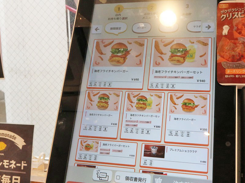 そして最後は同じくチキンのお店「bb.q オリーブチキンカフェ」の話題です。同店では「えびフライバーガー」シリーズが発売されましたよ。