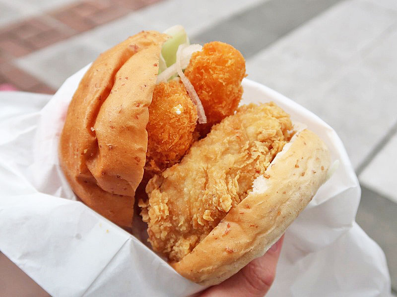 「チキンのお店でエビフライ?」と思ったら、間にチキンも挟まってるんですよ。味無茶苦茶にならないのかな?