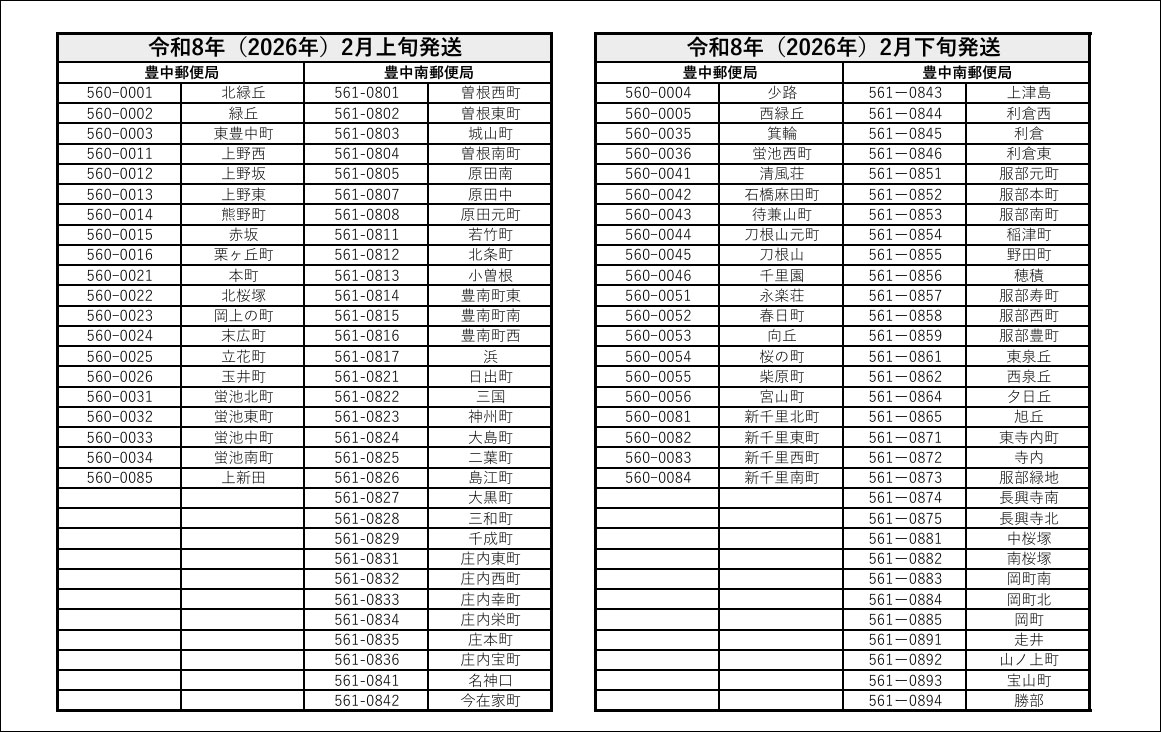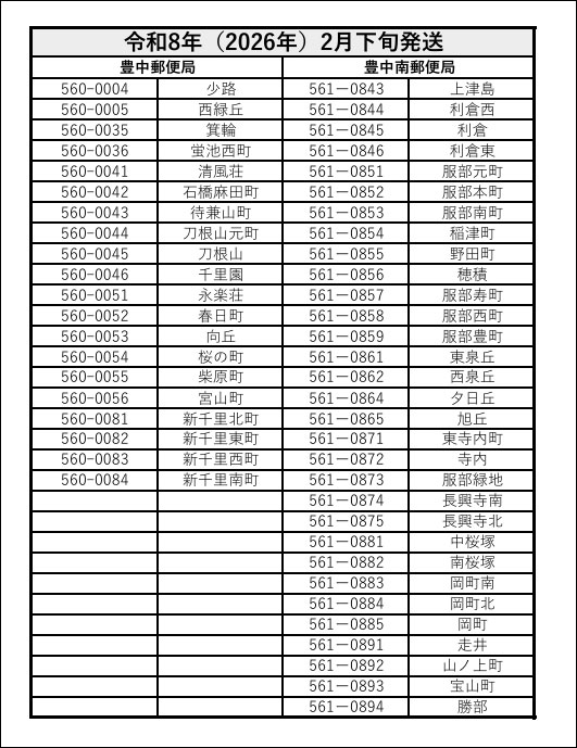 そちらによると郵便番号別で時期が変わり、2月の上旬と