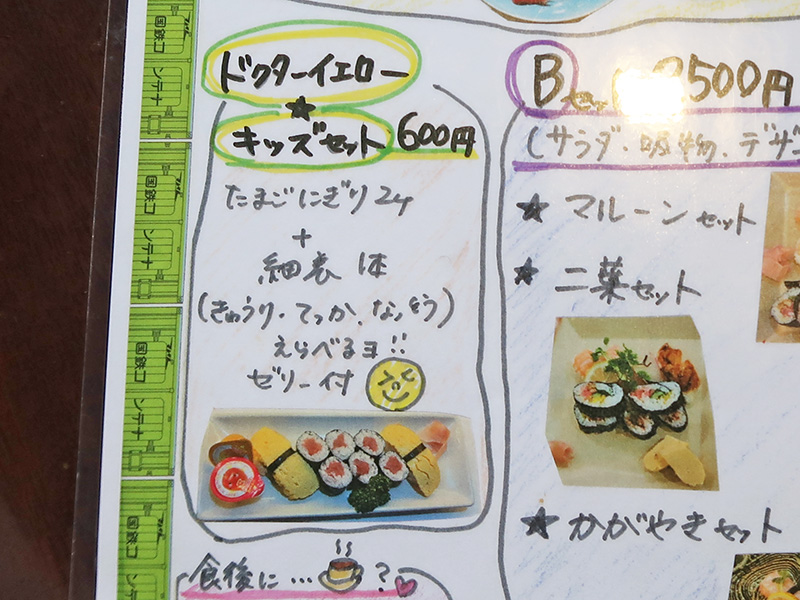 キッズメニューも用意されています。子ども大好き「ドクターイエロー」の名がついてます。