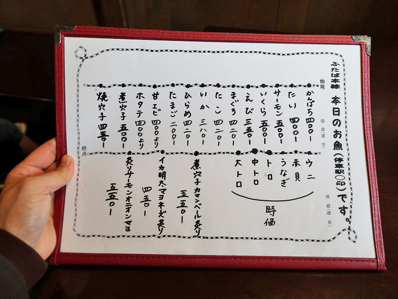 「本日のお魚」メニューはこんな感じ。こちらも路線図風。