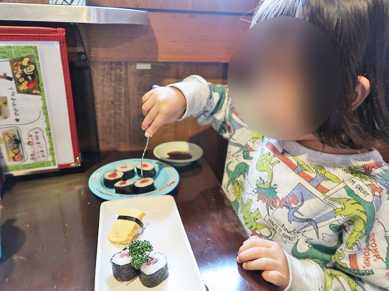 テーブルの高さも小さい子にちょうどよく、補助椅子なしで座れます。小さい子連れも安心~。