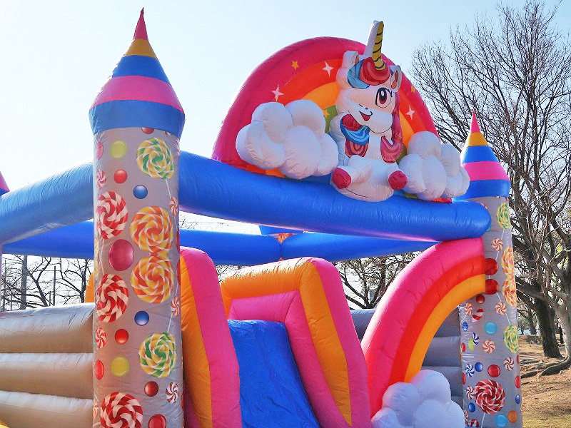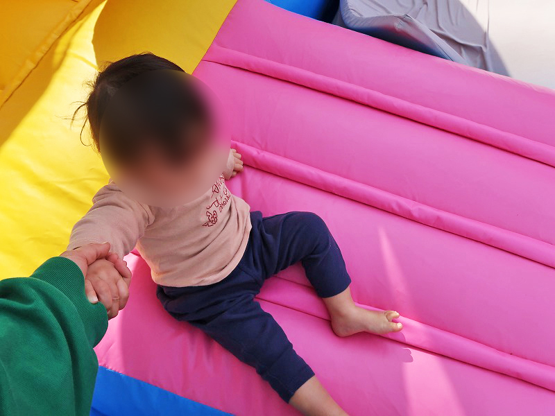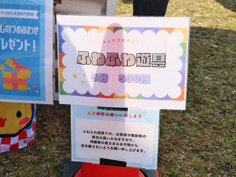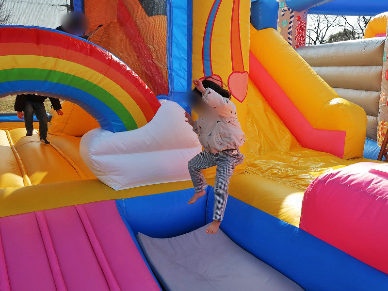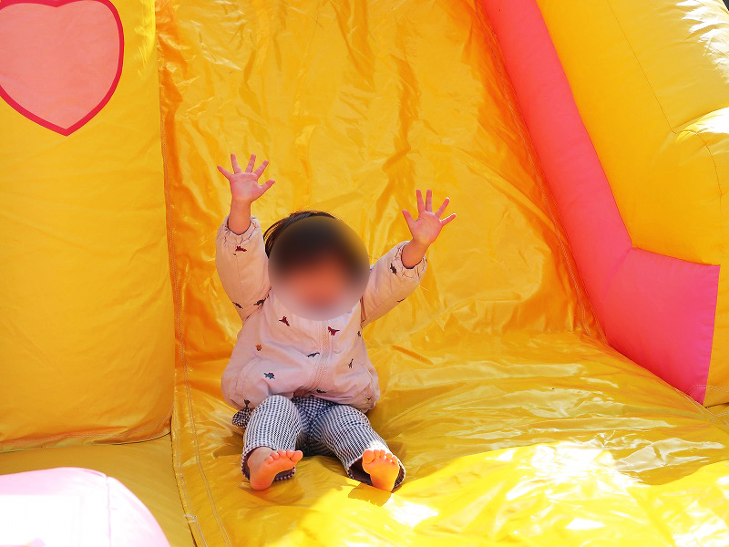 いよいよ、ブースを回っていきましょうか。最初に目につくのはこのふわふわ遊具ですね~。子どもが引き寄せられていきます。