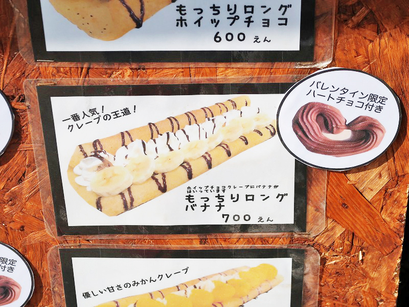 メニューはこんな感じ。半月型のぱりさくクレープと、ロール型のもっちりロングクレープがあるみたい。