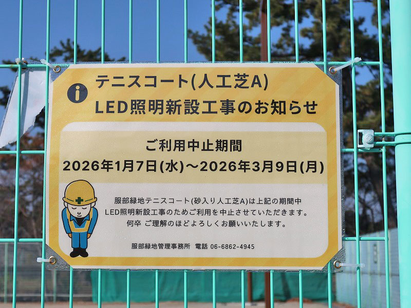 服部緑地公園のテニスコートで「夜間営業」をスタートするようです。