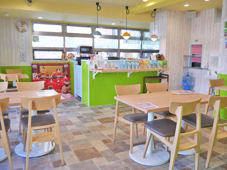 店内は白い木材と爽やかなグリーンが目を引く、柔らかい光が入る穏やかな空間。