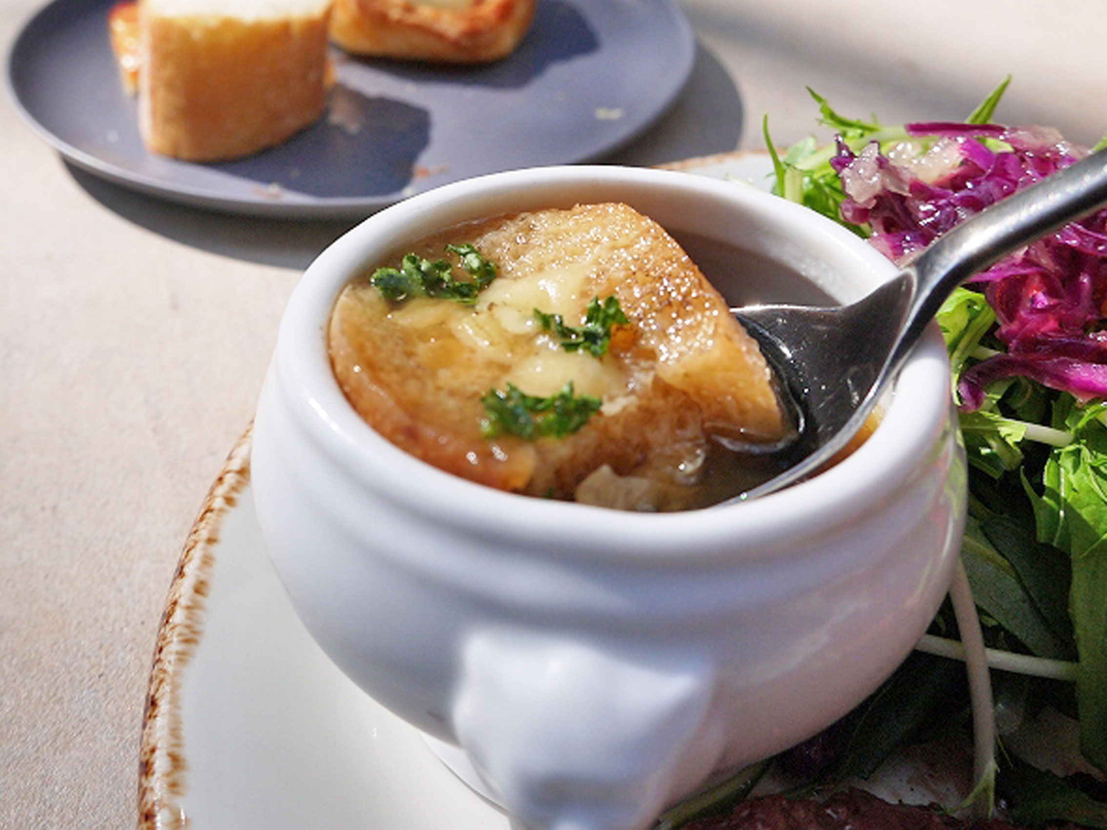 スープがパンにしみっしみ~。しっかりオニオンも入った贅沢スープ。