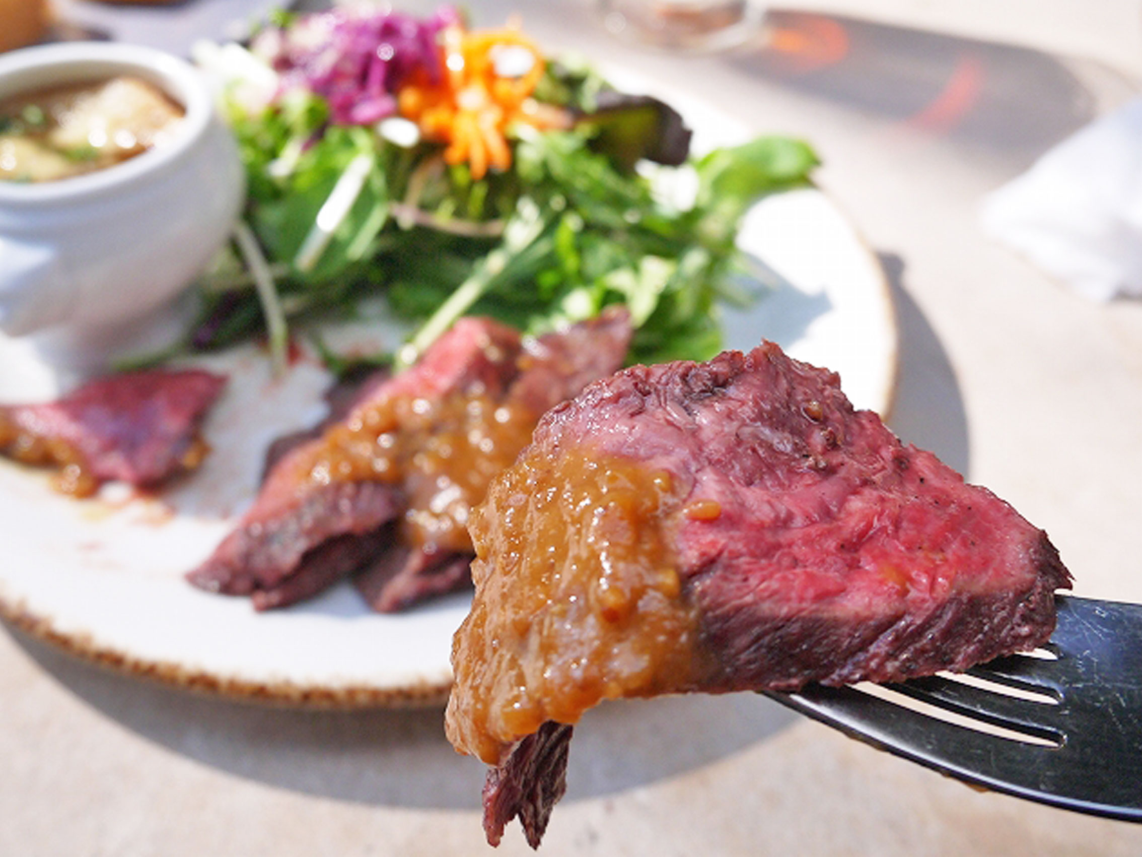 ※炭火焼き牛ハラミステーキ&オニオングラタンスープ(2490円)/税込/各種カード払いOK