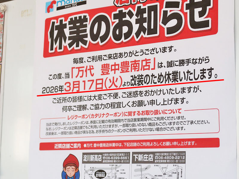 そちらによると、3月17日(火)から、店舗改装を理由に休業されるそうです。