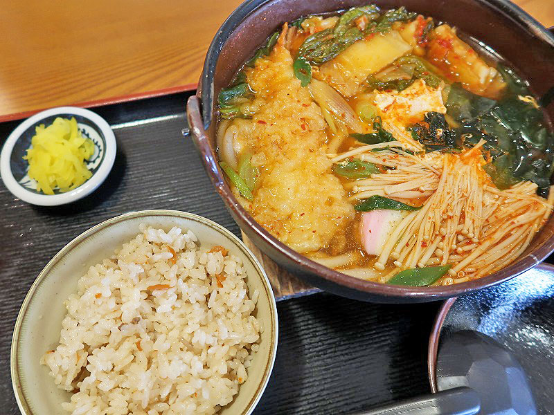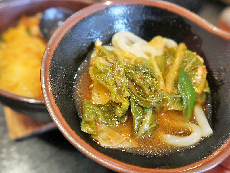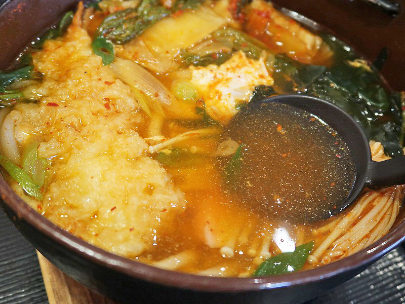 キムチ以外の「たまご・エノキ・かまぼこ・わかめ」がええアクセントになるんよ。
