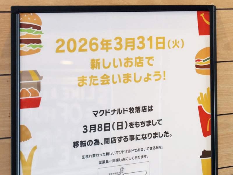 新「マクドナルド牧落店」の誕生、楽しみにしています。