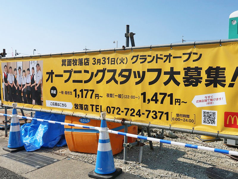 箕面市牧落にある「マクドナルド 牧落店」が移転のため閉店→1月に話題にした「171号線沿い」で建設中の新しいお店で3月末にグランドオープンするって