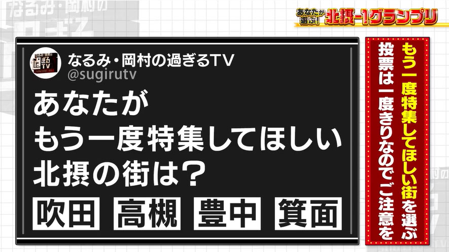 なお、現在番組公式X(旧Twitter)では「あなたがもう一度特集してほしい北摂の街は?」という視聴者投票が行われています。