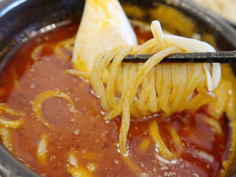 魚介系の濃厚な旨みと、スマッシュな辛さがスパークしたスープがマッチするのよね。