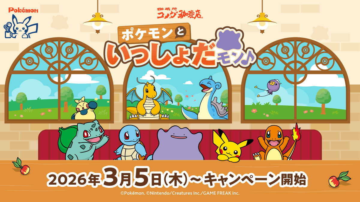 さて最後は「コメダ珈琲店」の話題です。「コメダ珈琲店」では、世界的人気コンテンツ「ポケモン」とコラボ中です。