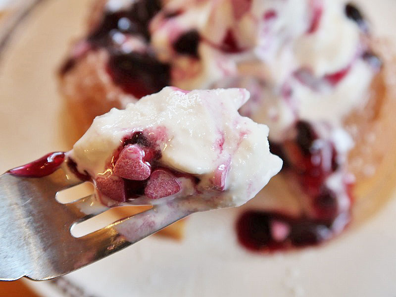 ん!シロノワールの間に挟まったチーズと、甘酸っぱいブルーベリーのマリアージュが美味しい♥