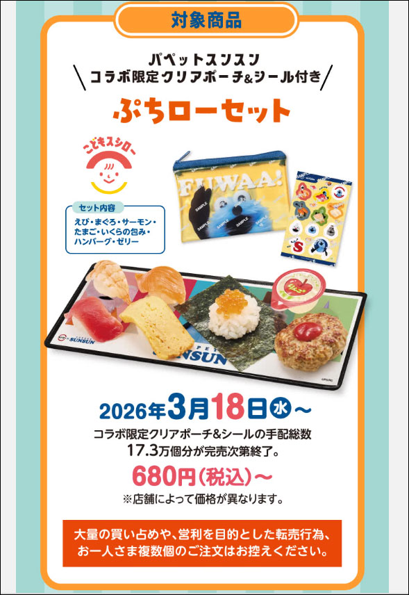 大人気キャラクター「パペットスンスン」と2回目のコラボが開催されています。