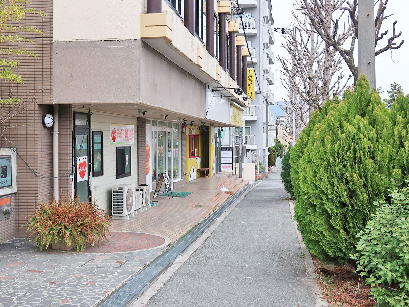 旧中央環状線から少し南に下りた府道121号線の側道沿い「floresta(フロレスタ)豊中ラボ店」のお隣です。