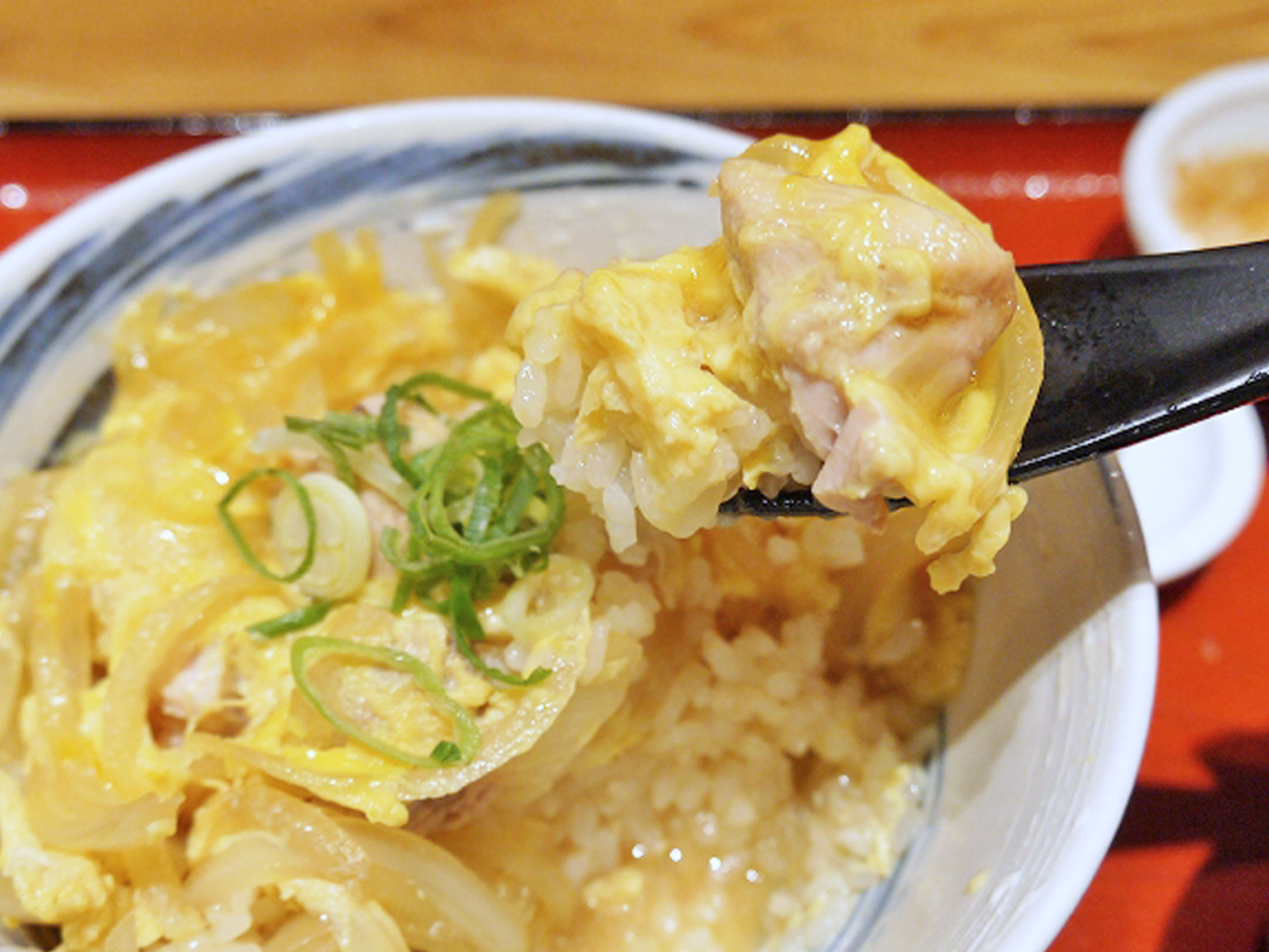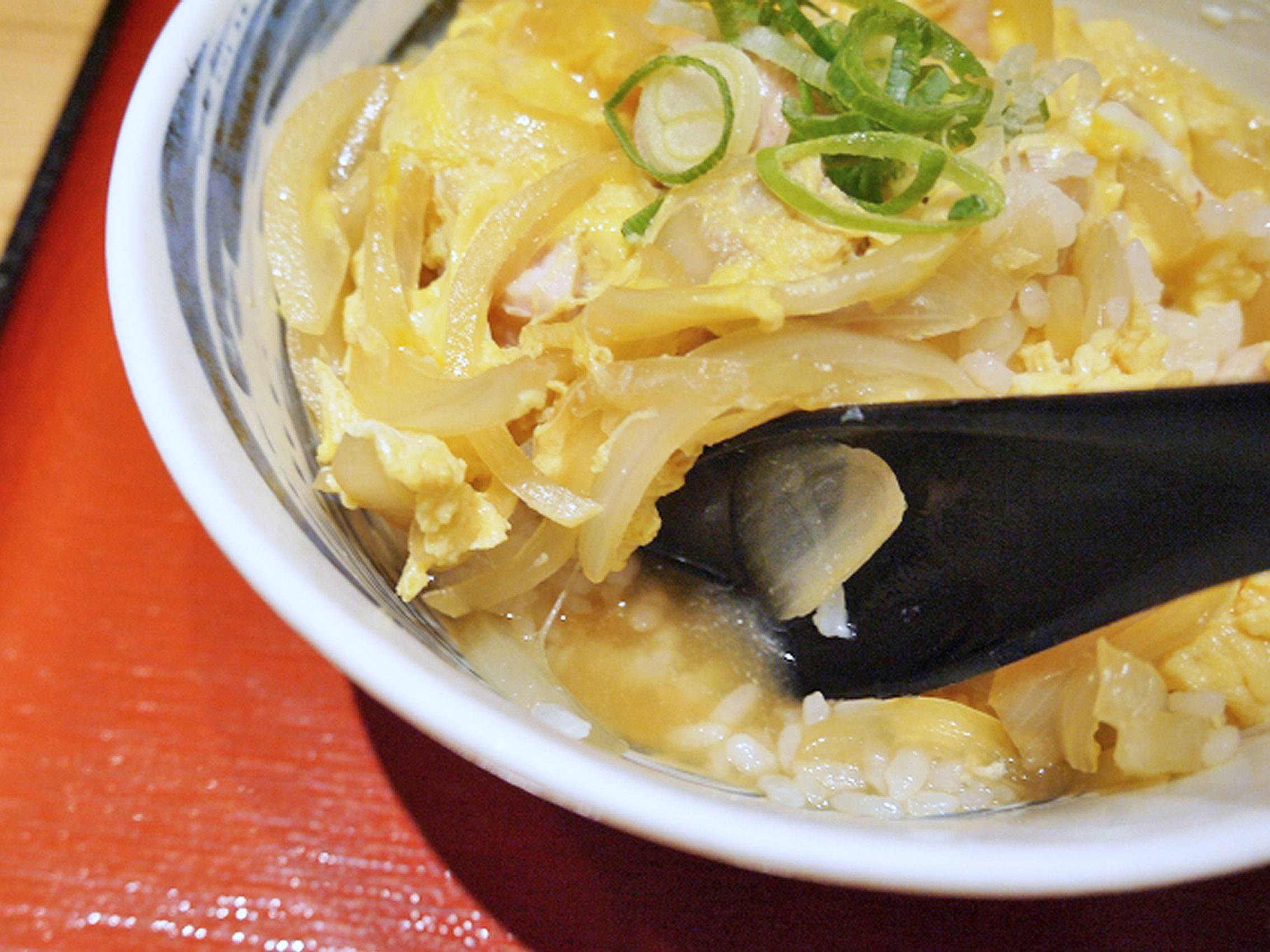 一口パクっと。うわ、トロっと卵にシャキシャキたまねぎ、そして何と言ってもやっぱり鶏が美味しい。