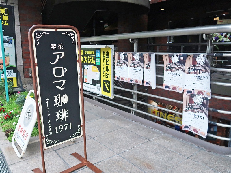 その向こうに「アロマ珈琲」という看板がありました! ここですね。