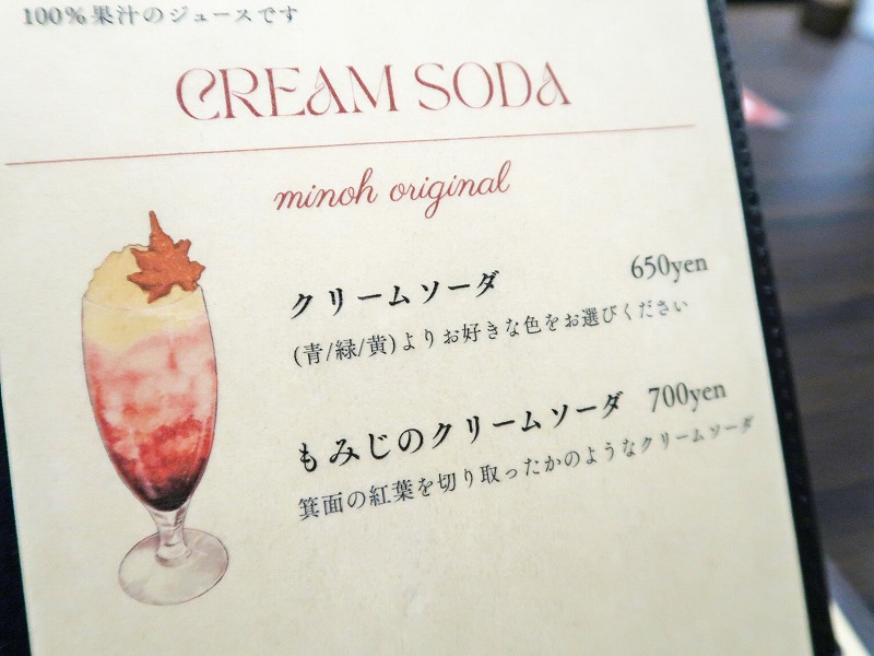 「もみじのクリームソーダ」といった、箕面ならではなメニューもありましたよ。