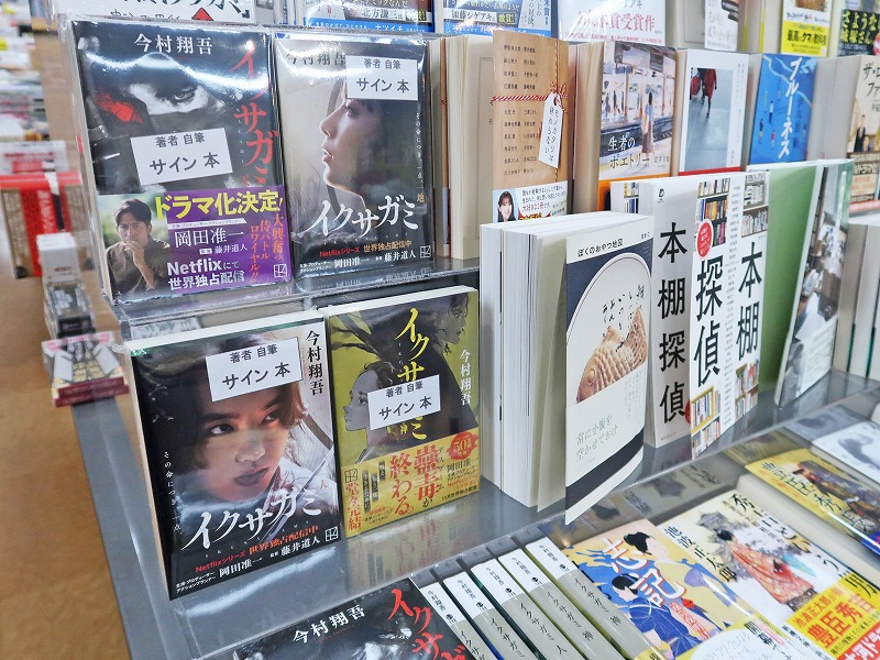 そこはオーナーが作家さんですから、今村先生のコーナーにはサイン本も並んでいましたよ。