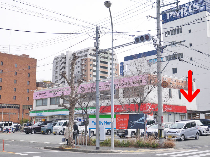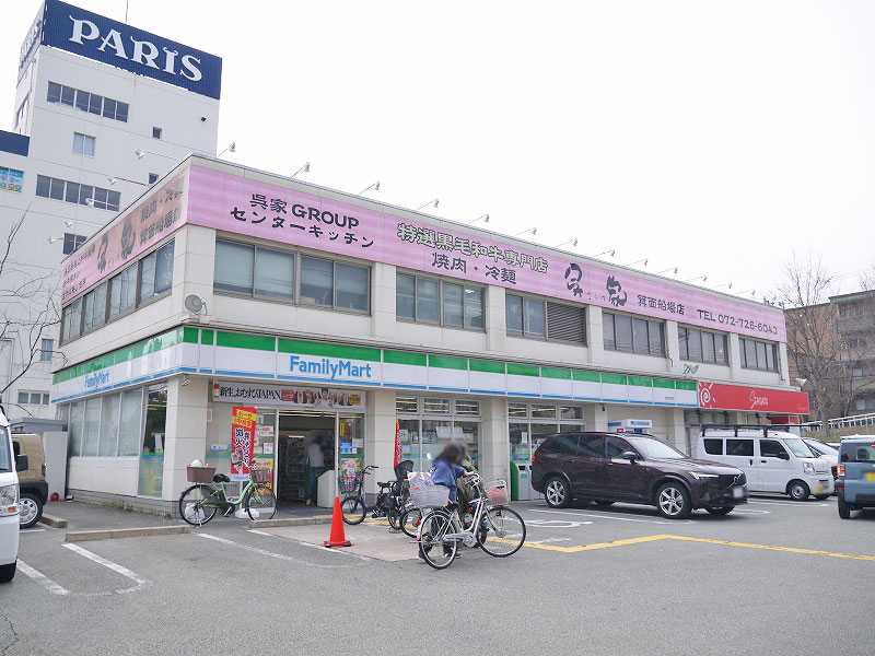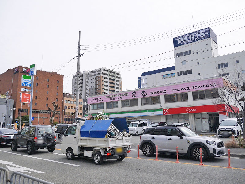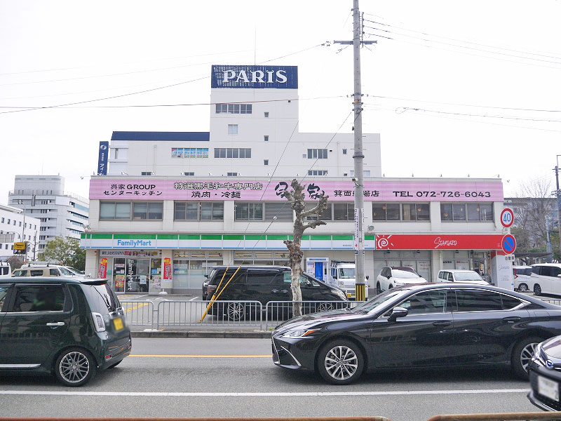 箕面船場阪大前駅から徒歩3分ほど、新御堂筋沿いのファミリーマートの2階にあります。