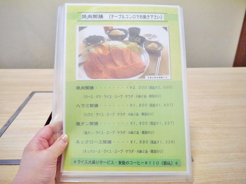 今回は「焼き肉ランチ」を楽しみたいので、やっぱりコンロで自分で焼くタイプがいいですよねぇ。