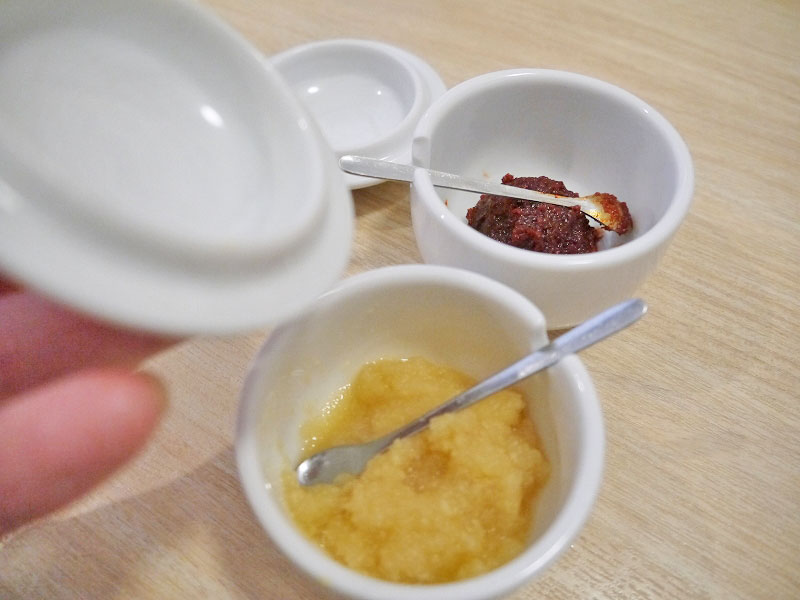 「にんにく」と「ニンジャン」という韓国の香辛料を付けて食べても