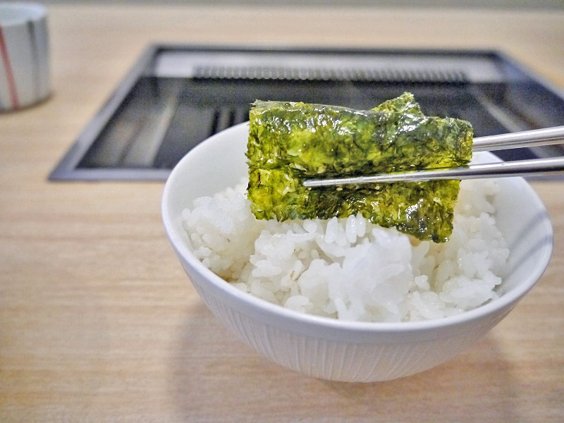 ライスも大盛りなので、韓国のりを巻いて食べてもOK。