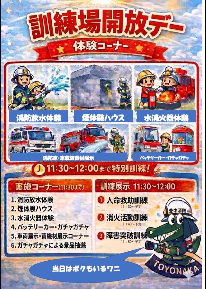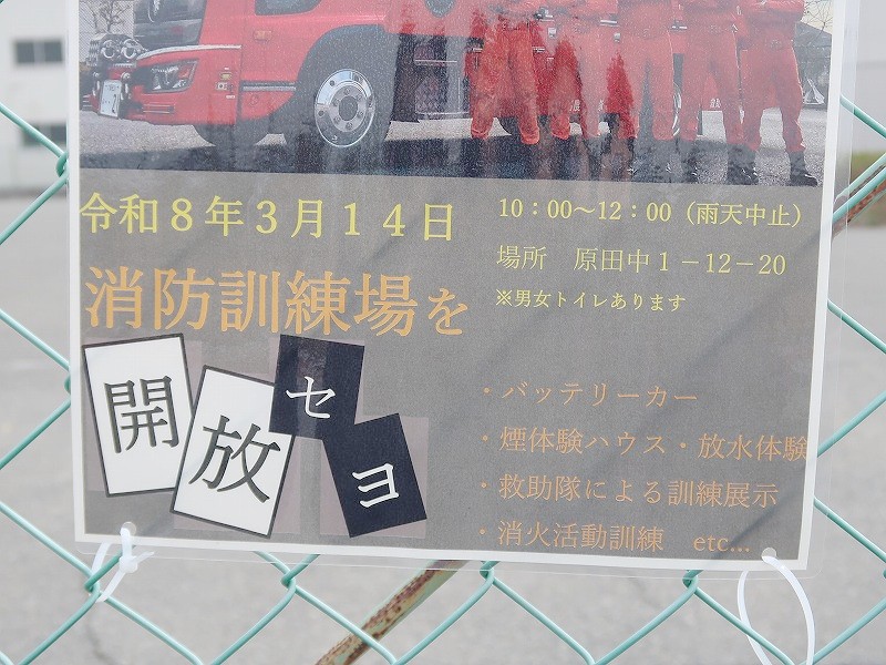 原田中にある消防訓練場で「消防訓練場開放デー」というイベントが開催されるようです。