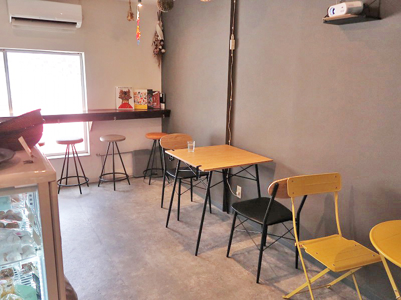イートインエリアは2名掛けテーブル2席、窓際にカウンター席が4席ありましたよ。