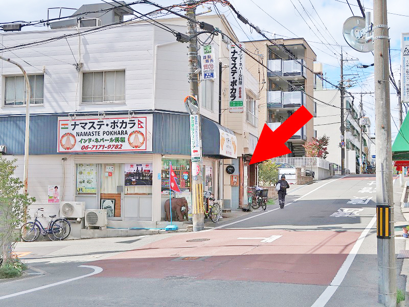 坂を下りきって少し上りになったところ、カレー屋さんのお隣です。