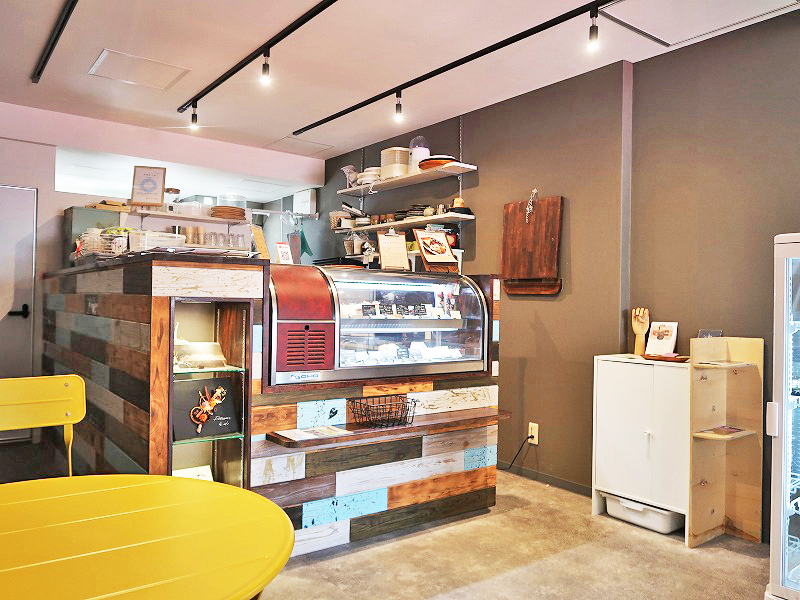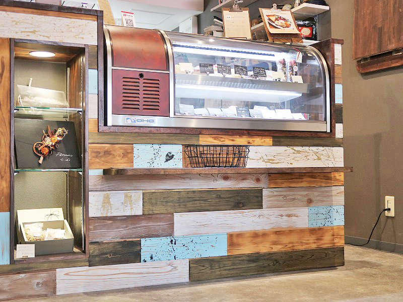 ヴィンテージ調で可愛いカウンターと、ケーキの並ぶショーケースが出迎えてくれます。