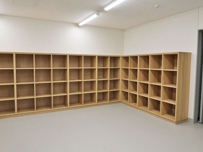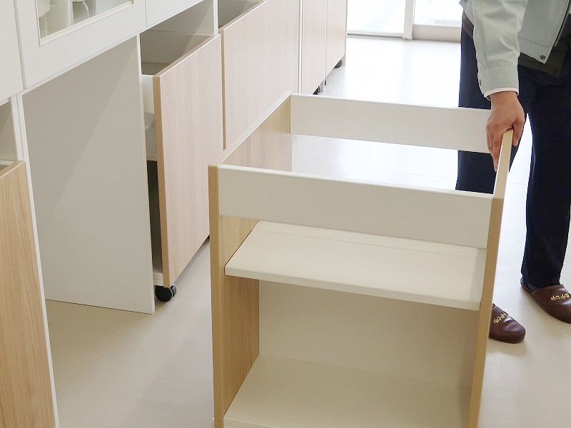 レイアウトを自由に変えられる、可動式の収納棚が備え付けられていました。