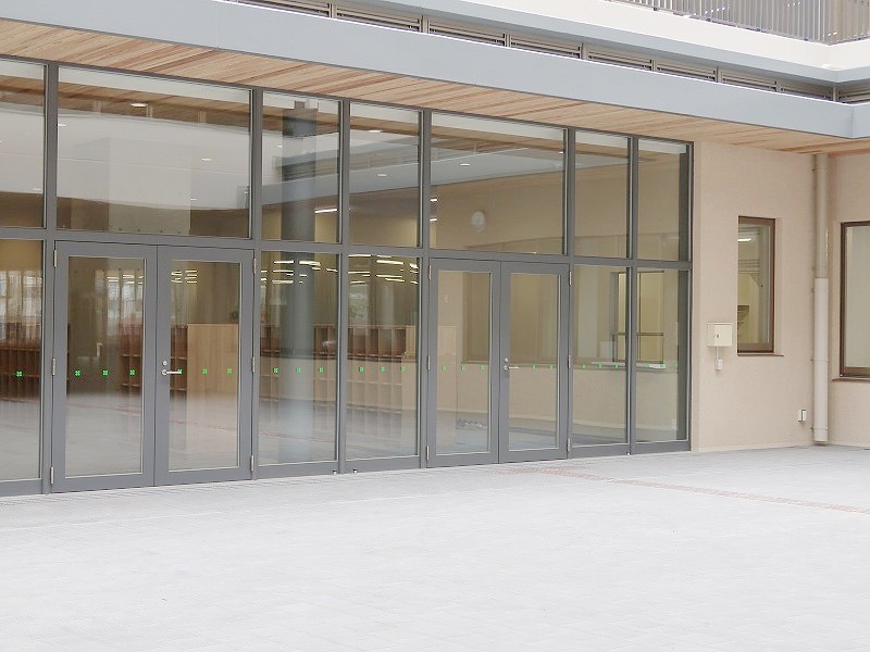 後期(5〜9年生)の生徒たちが使う昇降口は2階と、発達段階に合わせて分けられているそうです。